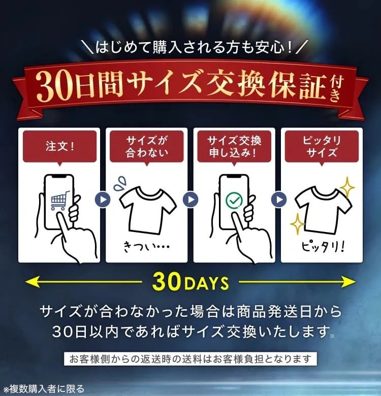 しかもサイズ交換を無料でしてくれるサポート付きだから